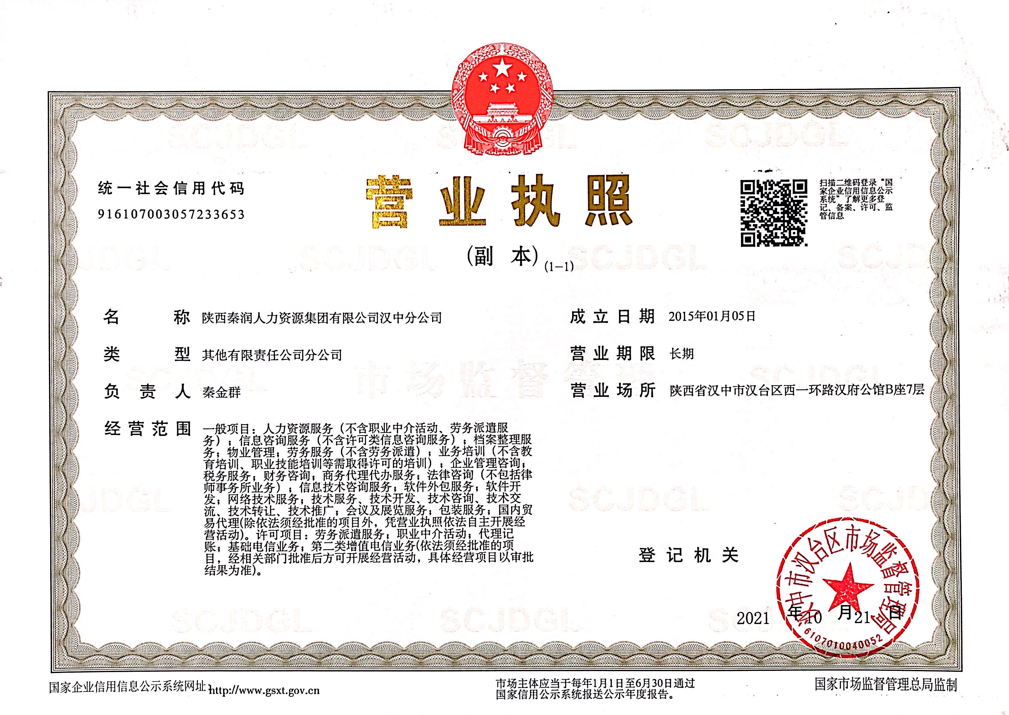 陜西秦潤人力漢中分公...